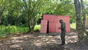 Em Cubatão, a equipe foi até o Jardim Nova República atender a denúncia da construção de dois imóveis em área de proteção. Chegando no local ficou constatado que edificações em madeira estavam sendo erguidas e serviriam como galinheiros. A área afetada está inserida dentro do Parque Estadual da Serra do Mar e tem o bioma da Mata Atlântica.