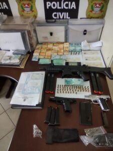 De acordo com a Polícia Civil, celulares, pastas com documentos, comprovantes de doações para campanha eleitoral, armas de fogo, sendo duas pistolas e uma carabina, munições e a quantia de R$ 62.763 em dinheiro foram apreendidas.