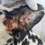 O homem foi abordado e questionado sobre a ocorrência, ele alegou que estava cuidando do animal e em relação ao machucado, disse que outras pessoas que o agrediram. No entanto, em volta do cachorro não havia alimento e nem mesmo água. Além disso, havia uma grande quantia de carrapatos e pulga e ele estava com aparência esquelética.