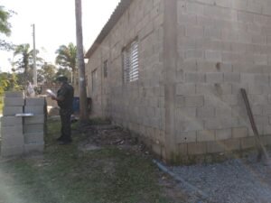As equipes foram até a Estrada Dois Irmãos, onde encontraram uma casa de alvenaria, com portas e janelas, no reboco em fase de acabamento interno e externo. Só que o imóvel estava erguido em área de vegetação nativa.