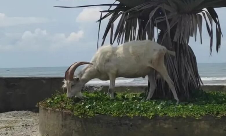 Um surfista de Mongaguá, litoral de São Paulo, flagrou um bode e uma cabra caminhando juntos pela faixa de areia da praia de Agenor de Campos. O momento foi registrado em vídeo e postado nas redes sociais.