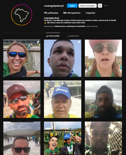 O perfil criado recentemente @contragolpebrasil já passa de 800 mil seguidores e 182 publicações.