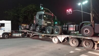 27 de outubro de 20210VÍDEO – Caminhão com duas carretas trava trânsito em avenida de Santos