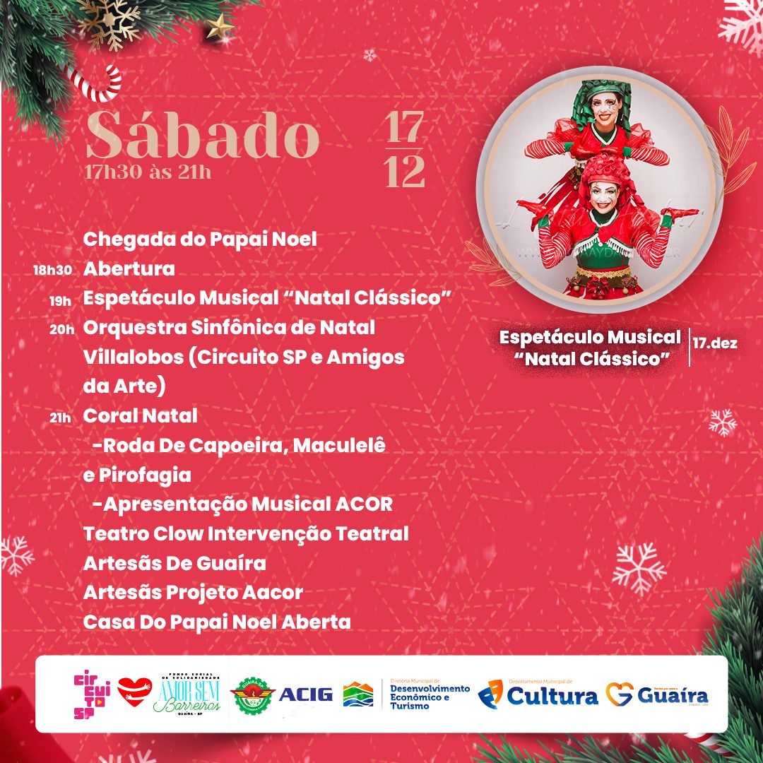A abertura do 2º Natal Encantado em Guaíra, acontece neste sábado, dia 17 de dezembro, com os Clássicos Natalinos.