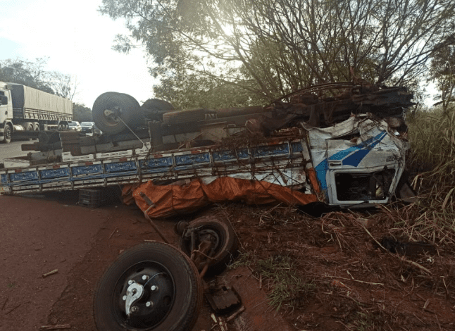 O motorista do caminhão alegou que tentou sair para o acostamento para evitar a colisão, mas o veículo tombou e capotou devido à perda de controle.