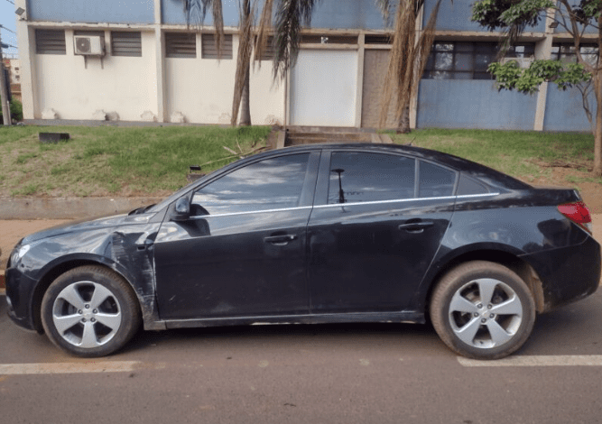 O veículo GM Cruze, preto, ano 2012, a princípio com placa ELX3A22, não apresentava queixa no sistema da polícia. No entanto, o número de chassi mostrou que carro havia sido roubado no dia 7 de outubro na cidade de Taquaritinga (SP). A verdadeira placa do veículo seria ENP8C73.