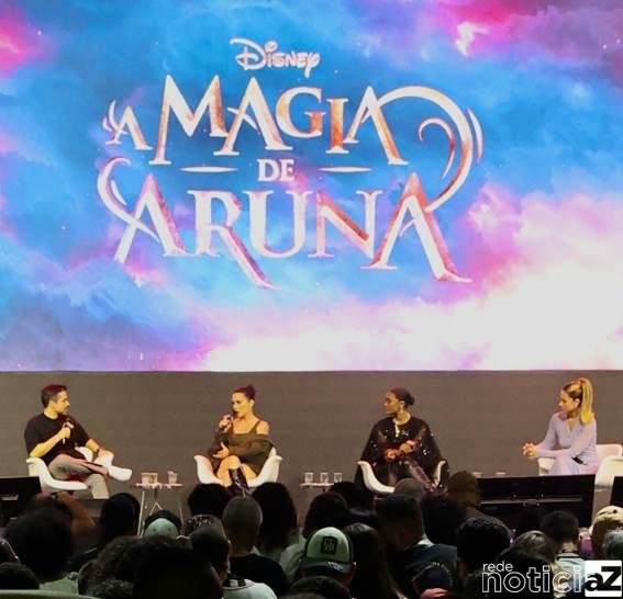 Encerrando o evento, Giovanna Ewbank, Erika Januza e Cleo, do elenco de “A Magia de Aruna”, série recém-lançada no Disney+, compartilharam detalhes sobre a produção. A trama segue a jornada de uma adolescente em busca da Aruna, uma partícula capaz de reativar a magia e equilibrar o mundo.