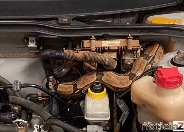 Um mecânico de Vilhena (RO) foi surpreendido durante a inspeção de um veículo que apresentava problemas na direção, conforme relatado pela proprietária. Ao abrir o capô em busca da causa, o profissional deparou-se com uma inusitada passageira: uma jiboia.