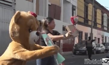 🚨ASSISTA: Em Lima, no Peru, Policial Militar se disfarça de ursinho para capturar traficante de drogas em pleno Valentine's Day. pic.twitter.com/IrY66HGV16